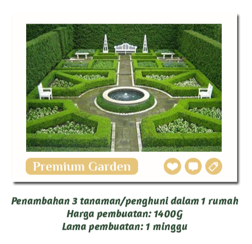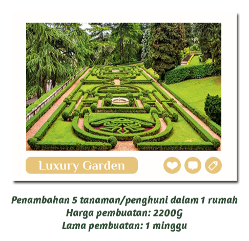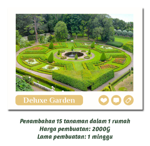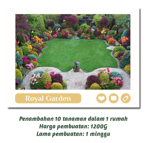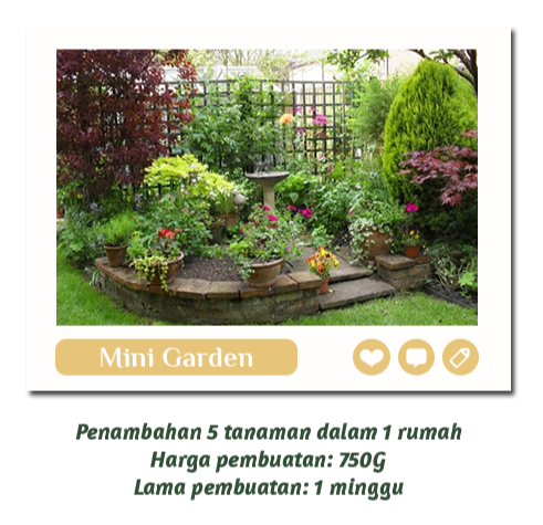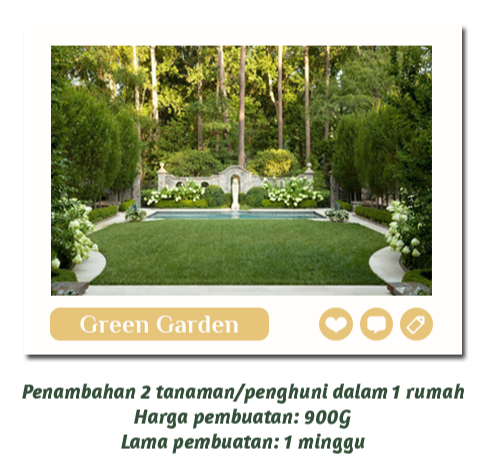- Pembuatan Garden maupun Upgrade Garden dibutuhkan waktu selama 7 hari.
